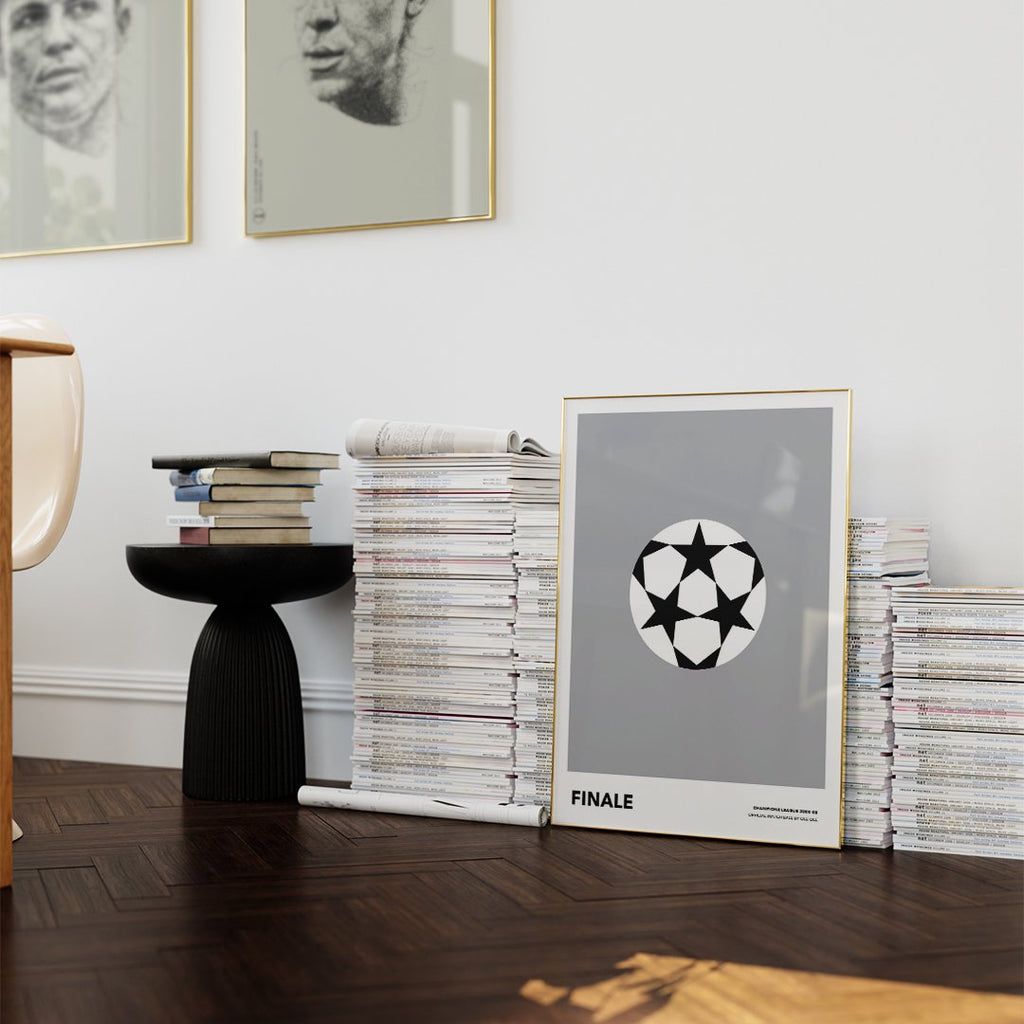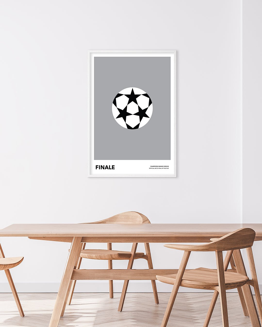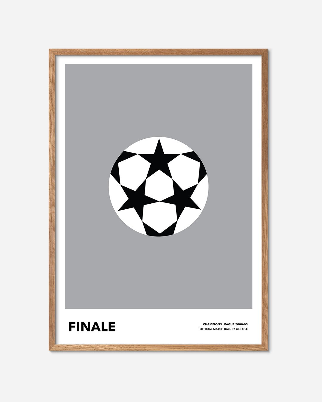 Football poster | In 2000, adidas took over as the official supplier of the Champions League ball, initially providing it only for the semi-finals and final. Two decades on, that iconic star pattern has become inseparable from the competition, evolving in colour and detail each season. It’s the ball Zinedine Zidane scored one of the most unforgettable goals in final history against Leverkusen.