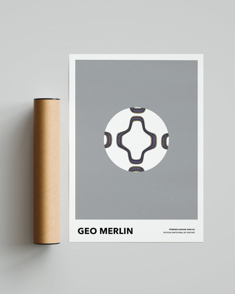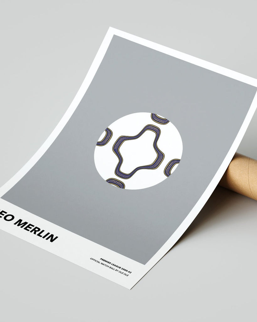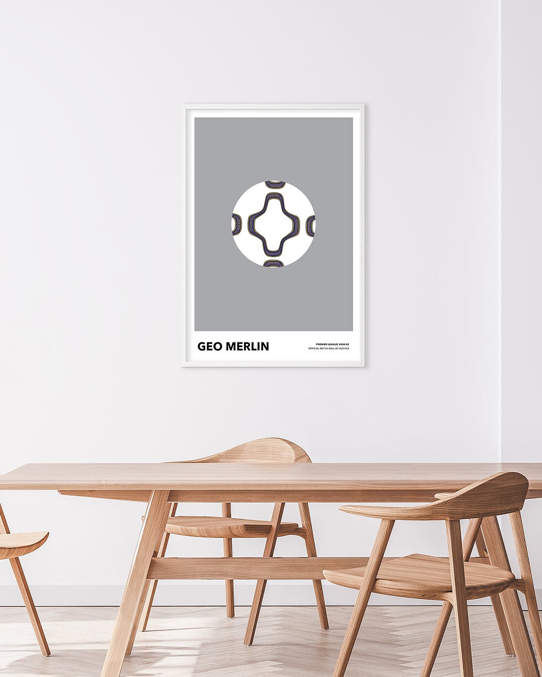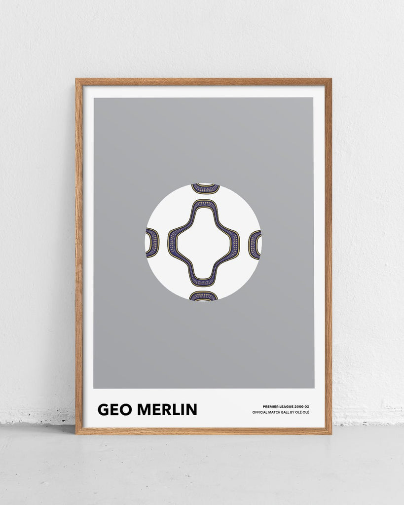 Football poster | At the turn of the millennium, Nike replaced Mitre as the Premier League’s official ball supplier with their debut design—the Geo Merlin—kickstarting a legacy that endures to this day. When you think Premier League, you think Nike footballs. Charlton’s Andy Hunt was the first player to score with the Geo Merlin, which went on to be the match ball for a remarkable 1,992 goals during its two-year stint in England’s top flight, including Les Ferdinand’s historic 10,000th Premier League goal.